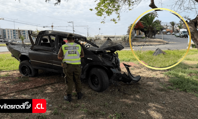 De acuerdo a la información proporcionada por el Capitán Andrés Chandía, jefe de la SIAT Arica, el accidente se produjo cuando una camioneta perdió el control por causas que aún se investigan. La fuerza del impacto fue tal que el vehículo terminó colisionando de lleno contra dos postes de alumbrado público, dejando daños estructurales de consideración en la vía.