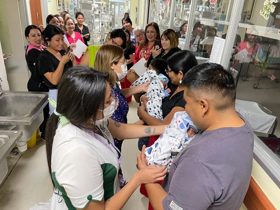 Isabella —que pasó de observar monitores con angustia a cargar a tres bebés sanos— recibe el reconocimiento entre aplausos que suenan a despedida y renacimiento.
