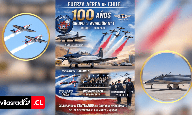 La Fuerza Aérea de Chile (FACh) se prepara para vivir una semana histórica en la región de Tarapacá. En el marco de la “Ruta del Centenario de la FACh” —camino al gran centenario institucional de 2030—, el Grupo de Aviación Nº 1 celebrará sus 100 años de vida con un despliegue masivo de cultura, música y acrobacias aéreas en Iquique y Alto Hospicio.