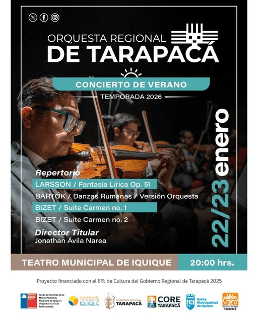 ORQUESTA REGIONAL DE TARAPACÁ: MÚSICA EN VIVO DESDE LAS 20:00 HORAS
